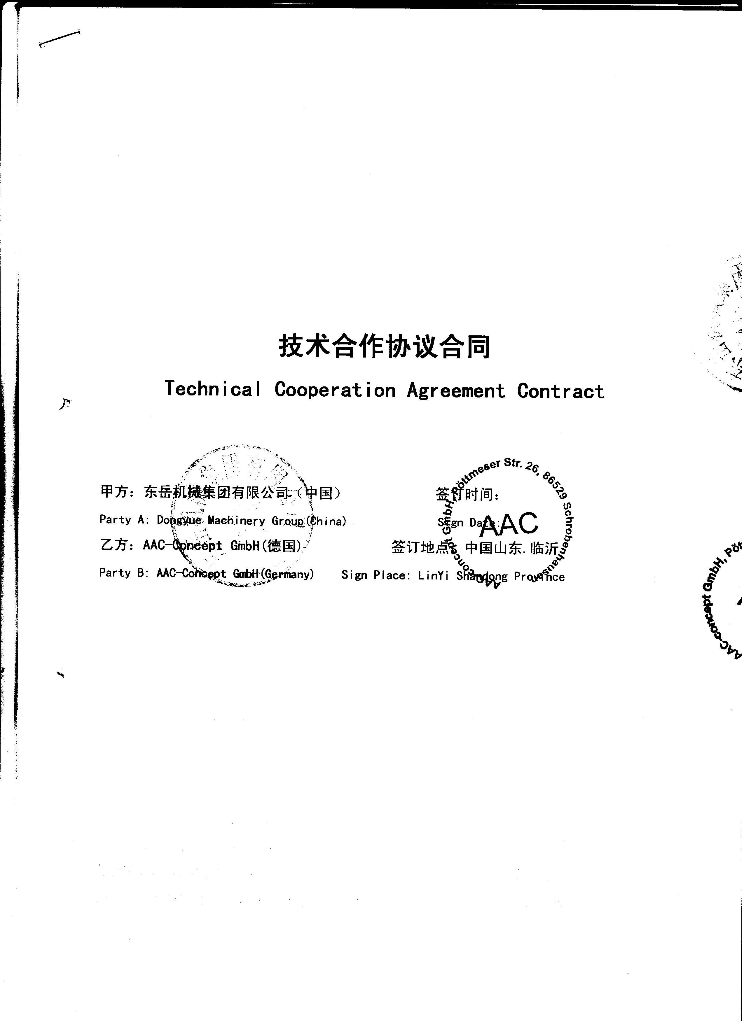?東岳機(jī)械股份有限公司與德國(guó)卡茨貝通集團(tuán)技術(shù)合作協(xié)議證明: